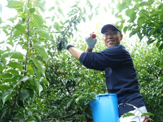 若い人達も、もぎ採り体験を申し込んでくれました。