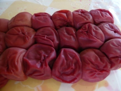ちなみに、紅の付いた梅ばかりでつくると、出来た梅酒等はピンク色になる位です。